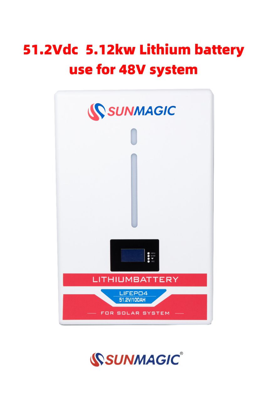 The SunMagic 51.2V 5.12kW LiFePO4 Lithium Battery is designed to meet the energy storage needs of 48V solar power systems. With a robust 100Ah capacity, this battery utilizes advanced lithium iron phosphate (LiFePO4) technology to ensure long-lasting performance, quick recharge times, and stable power output. It offers excellent safety features, including overcharge and deep discharge protection, making it ideal for off-grid solar installations, energy backup, and other high-demand applications. This battery is built to support sustainable energy solutions by delivering reliable power, reducing dependence on the grid, and optimizing renewable energy usage.